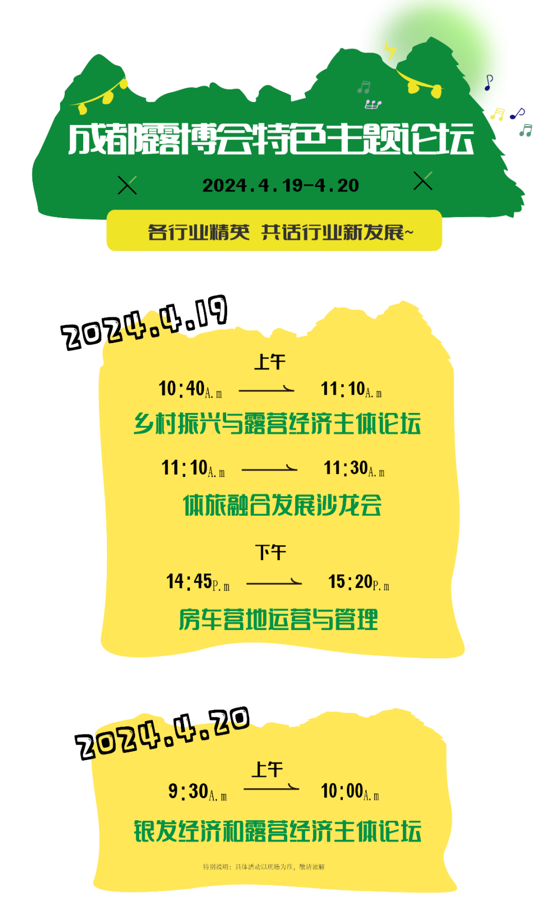 25000㎡展览面积、露营上下游产业链展商、10+同期活动 2024年4月19-21日成都桂溪体育公园中央草坪(成都体育会客厅旁) 期待与您共享露营新方式~ …