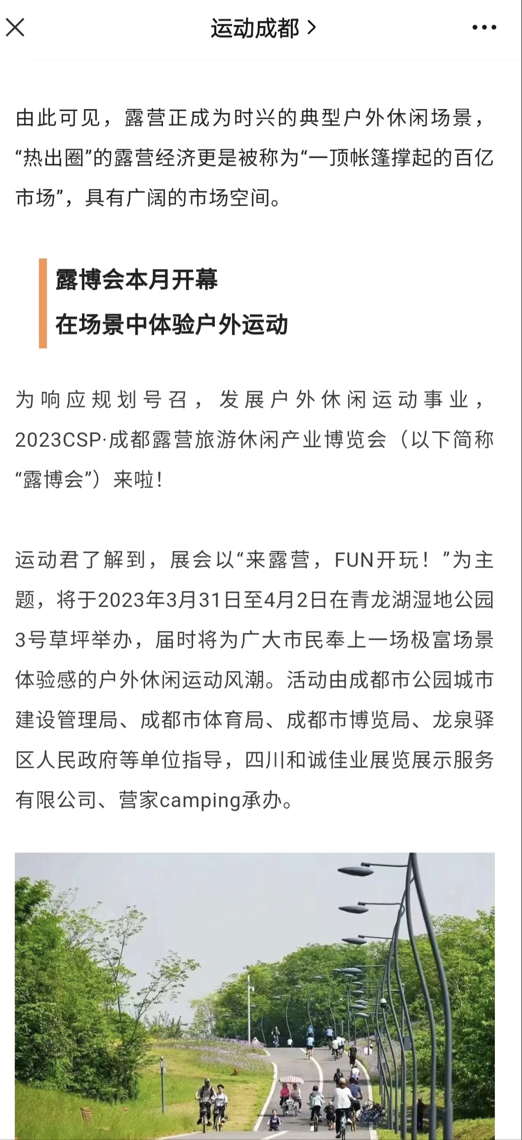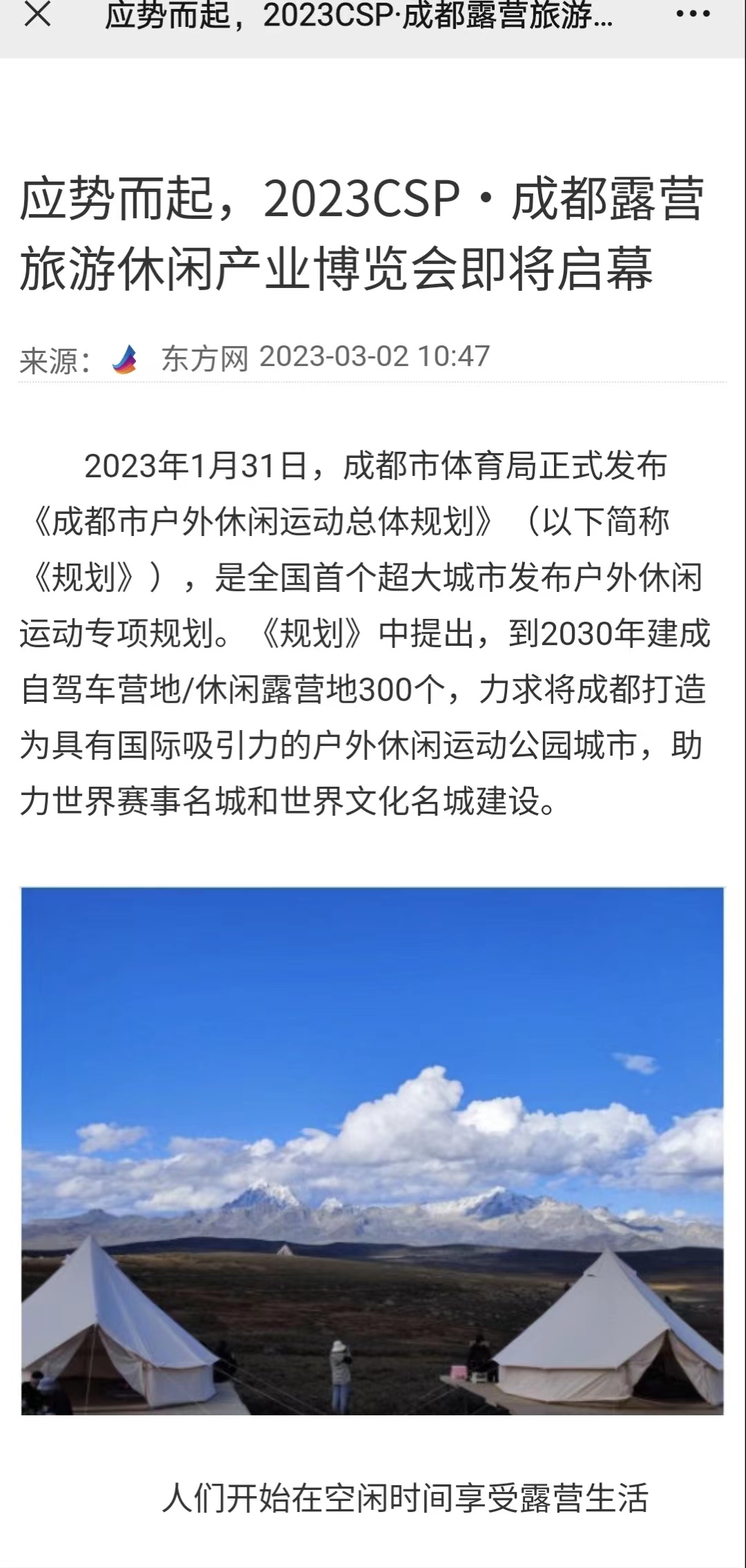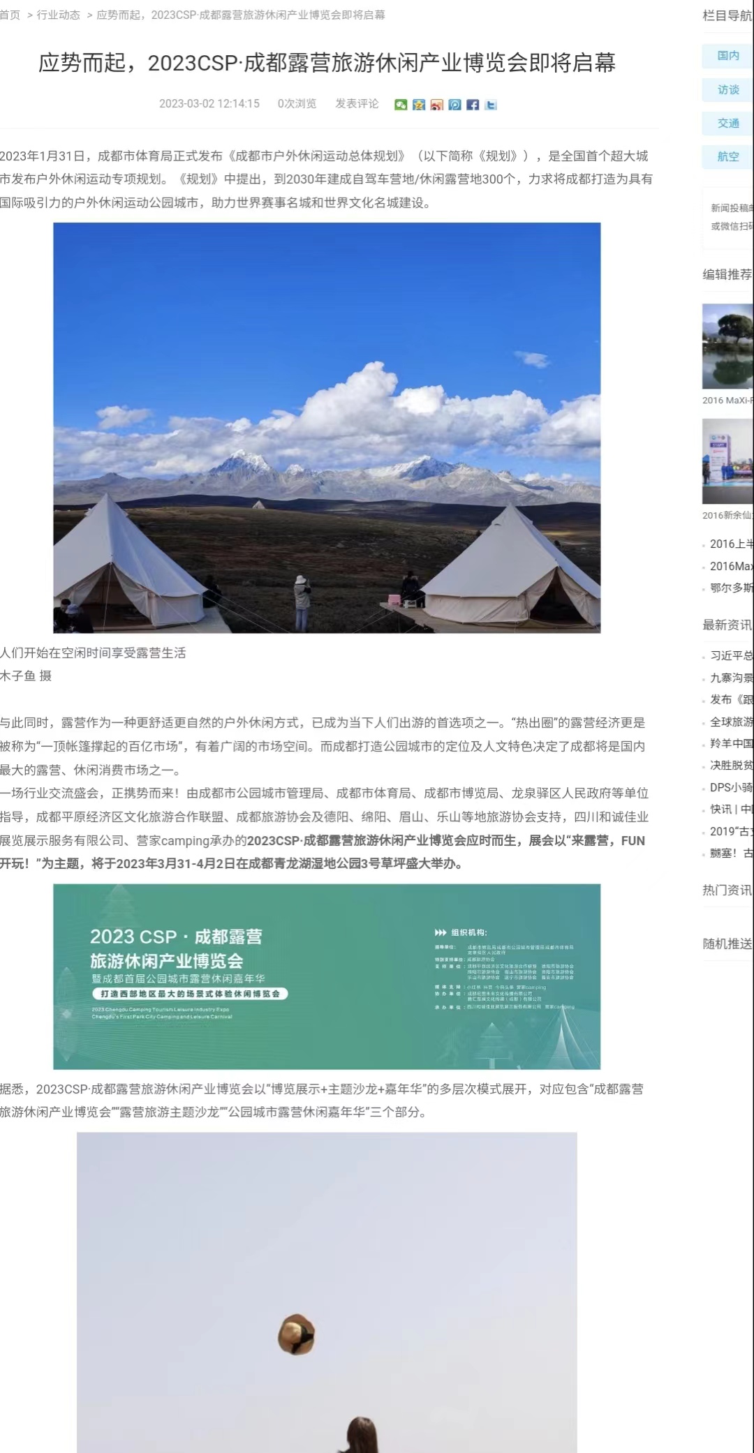 成都露营博览会开展在即,各大权威媒体纷纷报道本届大会相关新闻,以下是截图。